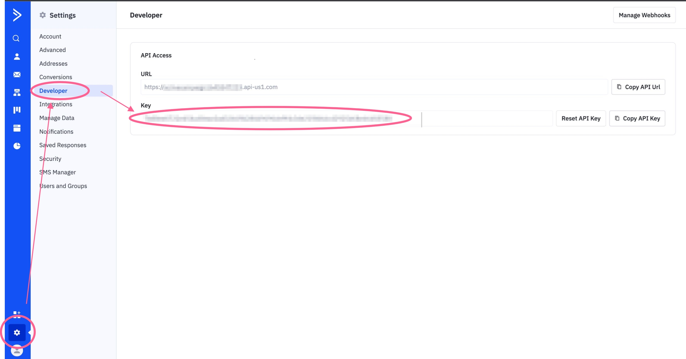 Click on Copy API Key and paste it on the Erathos platform accordingly