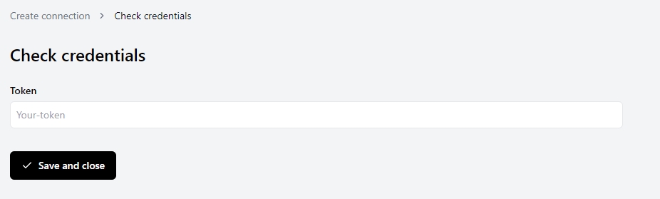 Now, paste the value in the Erathos platform Token field. Don't forget to click on Save and close to advance to the next steps of the integration.
