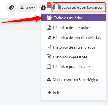 To create the access tokens, enter the users page in http://superlogica.net/usuario or pass your mouse along your user and click on All users as the attechment below: