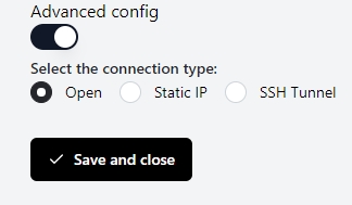 On the Advanced config toggle button, you can select which connection you'd like to perform.