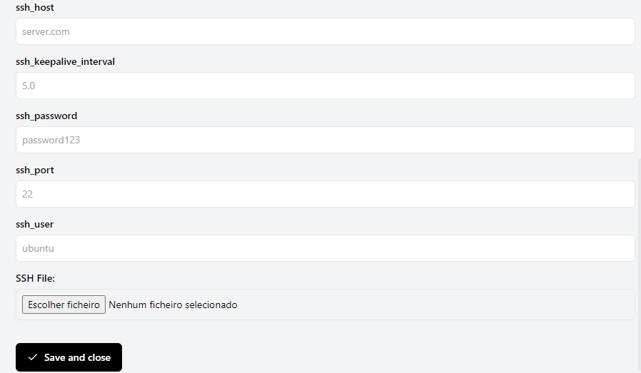 If you choose to connect through SSH Tunnel, you will need to fill in the additional form below: